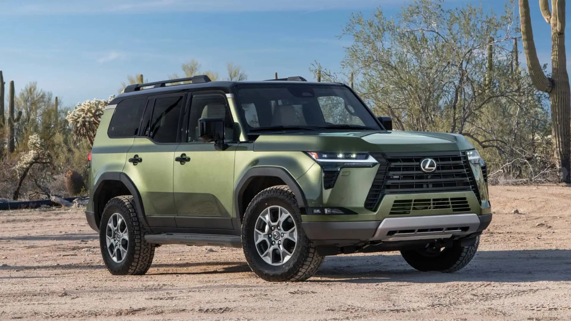 2025 Lexus GX 550 Overtrail. This thing looks like the direct descendant of the rugged Land Rovers that used to traverse the Khyber Pass in Afghanistan with jerry cans strapped to their front bumpers. It’s got mammoth 33-inch wheels, the biggest ever fitted to a Lexus, and in the Overtrail+ a one-inch lift to get over boulders. Back in the 60s, music was provided by the distant call of mountain yaks, but this is 2026 in America, so you can pay $1,140 for the 21-speaker Mark Levinson sound system. The GX Overtrail+ adds pre-wired aux switches and an emergency-ready onboard air compressor. The big GX was redesigned in 2024