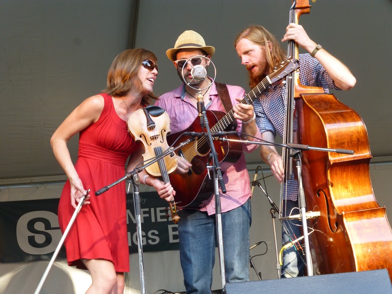 The Stray Birds: close harmonies around one microphone. (Jim Motavalli photo)
