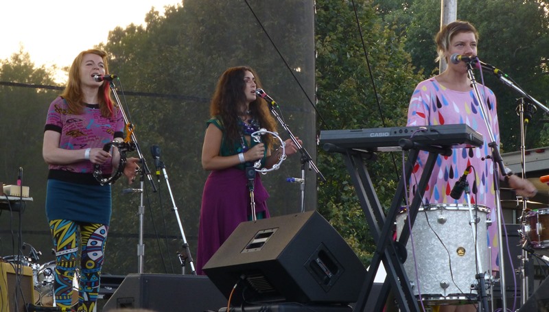 Imagine this bill: Arc Iris (in video above) opening for Tune-Yards. That would shine. In fact, they both played on July 11, just on different stages. Arc Iris is a new band headed by Jocie Adams, formerly of the entirely different Low Anthem. A support player in that group—she didn’t sing lead, just backup—in Arc Iris Adams is fully up front, in costumes, yet.