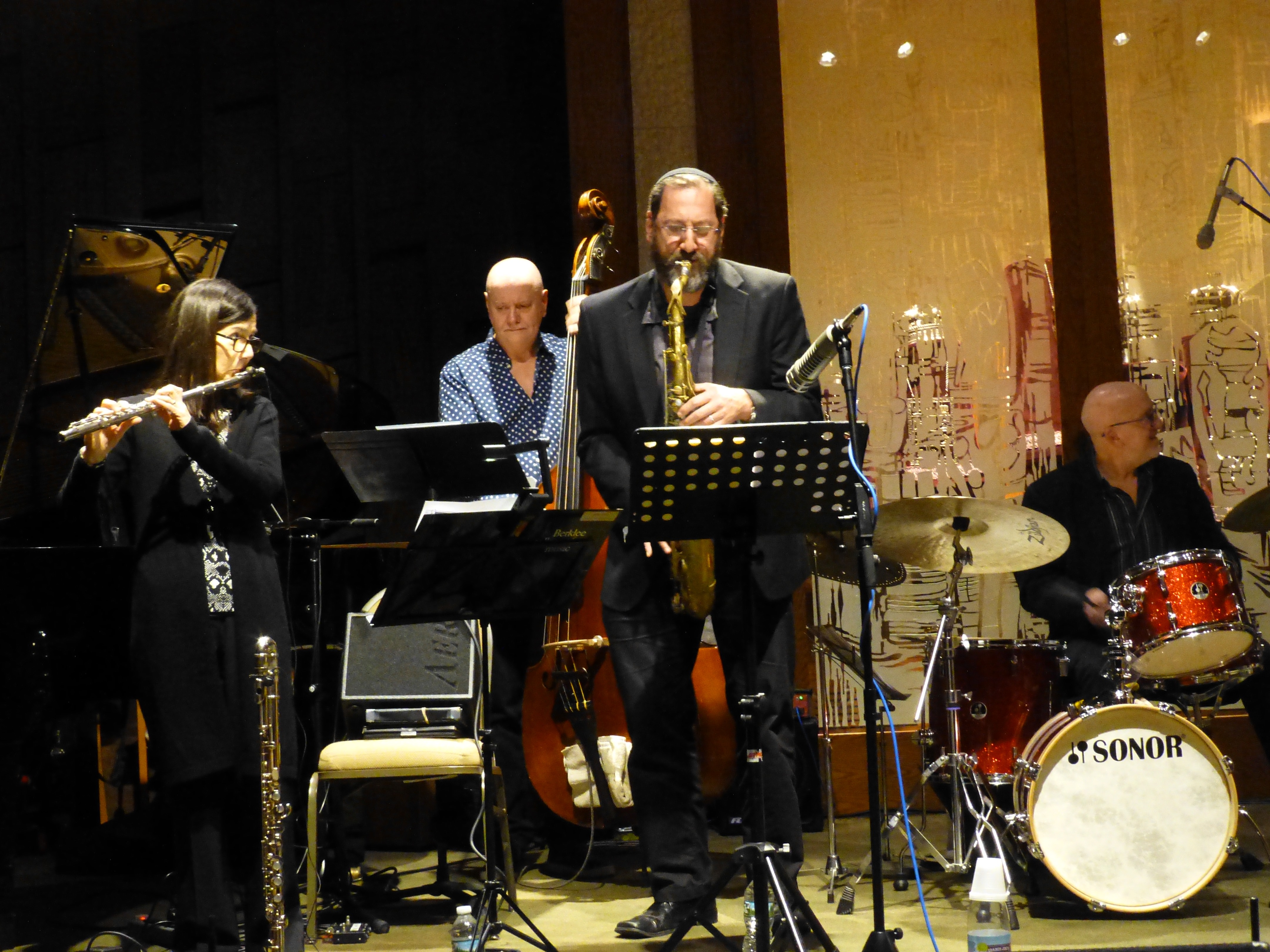 P1090115 Published December 21, 2017 at 4320 × 3240 in Jazz at the Synagogue (During Hanukah) Next → Greg Wall wails. Baum is on left, Anderson behind Wall, and Nussbaum at the rear. Absent from the photo: pianist Brian Marsella. (Jim Motavalli photo) greg wall