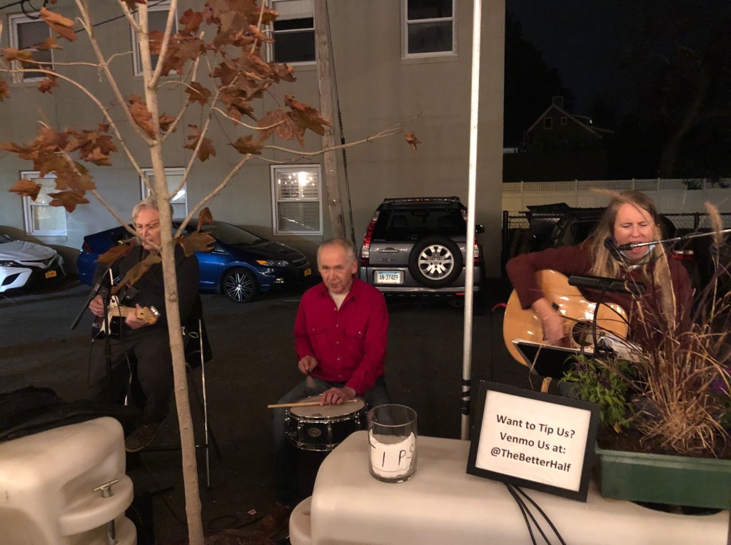 The second show featured my friend guitarist Greg Packham–playing drums. Or in this case, drum. We were at Applausi, an Italian restaurant in Old Greenwich, Connecticut. The food was delicious, and it was nippy but not yet cold.