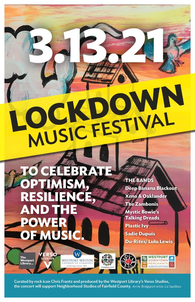 Chris Frantz, drummer for Talking Heads and Tom Tom Club and a WPKN disc jockey for a decade, is presenting a virtual day of music, The Lockdown Festival, on March 13. Frantz lives in Westport, Connecticut, and the festival will be hosted at the town library’s new Verso Studios. Tickets at $25 are available at https://westportlibrary.org/lockdown-music-festival, and the event will benefit Neighborhood Studios of Fairfield County, a nonprofit promoting art, music, theater and dance. A $40 contribution scores a ticket and the concert poster.
