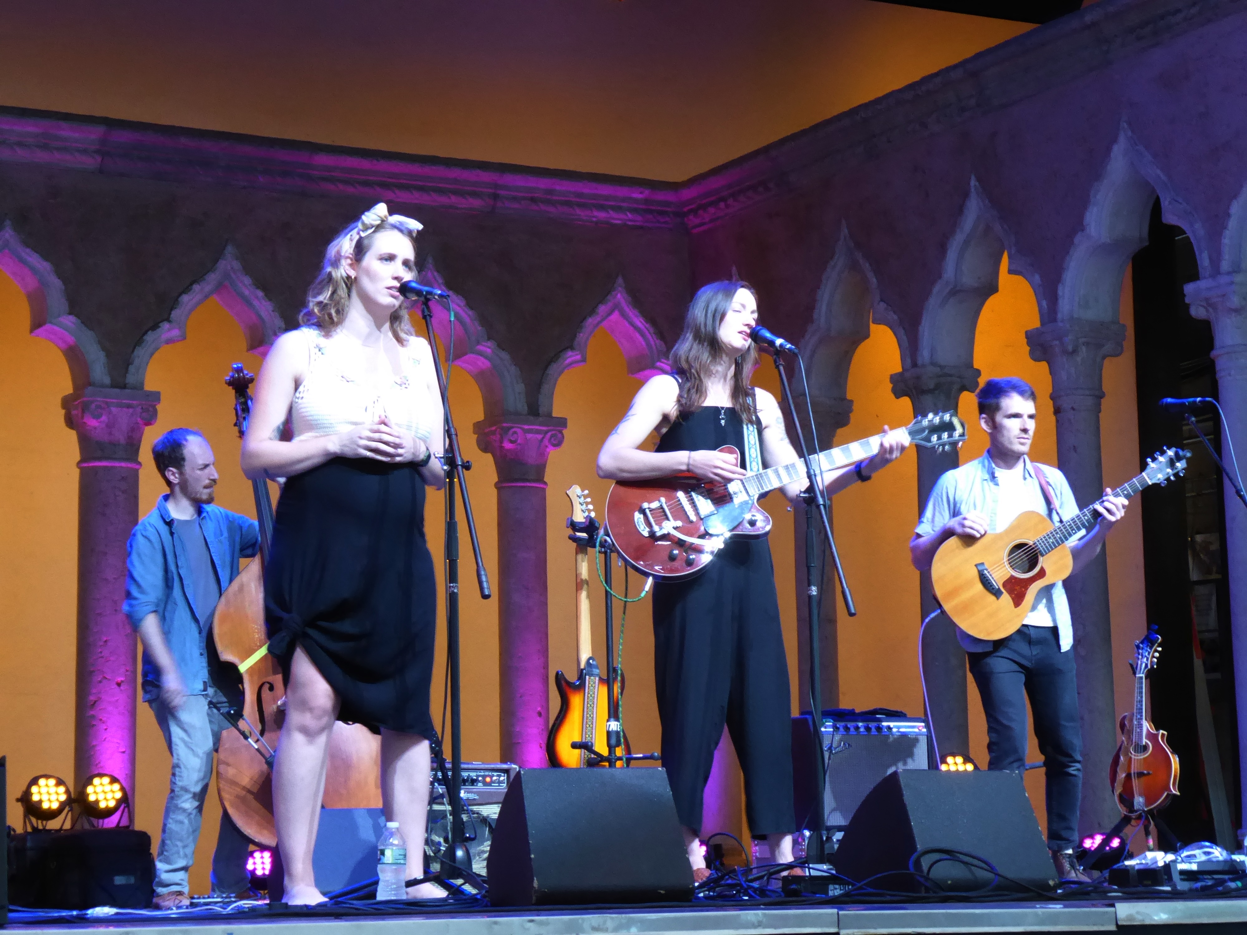 The Brooklyn-based RT’s were already playing when we arrived. It was possible to set up in the shade, and still be pretty close to this enhanced singer-songwriter outfit. Enhanced in the sense that they had a horn section—trumpet and baritone saxophone. It was pleasant pop with a brassy oomph. The baritone guy had serious chops. I usually blanche at descriptions of bands that mix “punk rock energy, horn-drenched soul & precise musicianship,” but the RT’s went down easy. Their songs could be more distinctive. They later played an acoustic set.