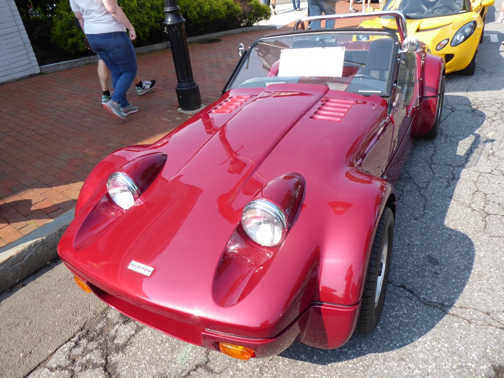 A row of restored Schwinn bikes, made new again by Jim Cooper in Norwalk, Connecticut, was nice to see. How many 1992 Maxton Rollerblades have you seen? These cars, inspired by the Lotus 7, are fairly basic—and this one was #16 of 51. British cars abounded, including several original Minis and Mini Coopers, plus Austin-Healeys (a ragged but right 100), Triumphs and Jaguars (exquisite XK120s).