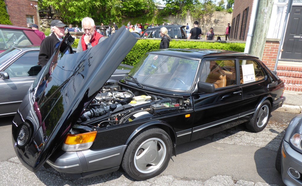 Allen was encountered May 21 on the ground at Caffeine and Carburetors, the truly wonderful and informal old car gathering in New Canaan, Connecticut. These cars and coffee events have caught on across the country—take a look, there’s probably one near you. In a parking lot around the corner I met Lewis Eig, who drove up from northern New Jersey in his 1984 eight-valve 99 GL, an import from the Netherlands, now converted to 16-valve turbo and wearing a fanciful “99 Aero” plate. Eig, whose father started him on Saabs, is a very hands-on guy who also restores Porsches—and plans vintage rallies.