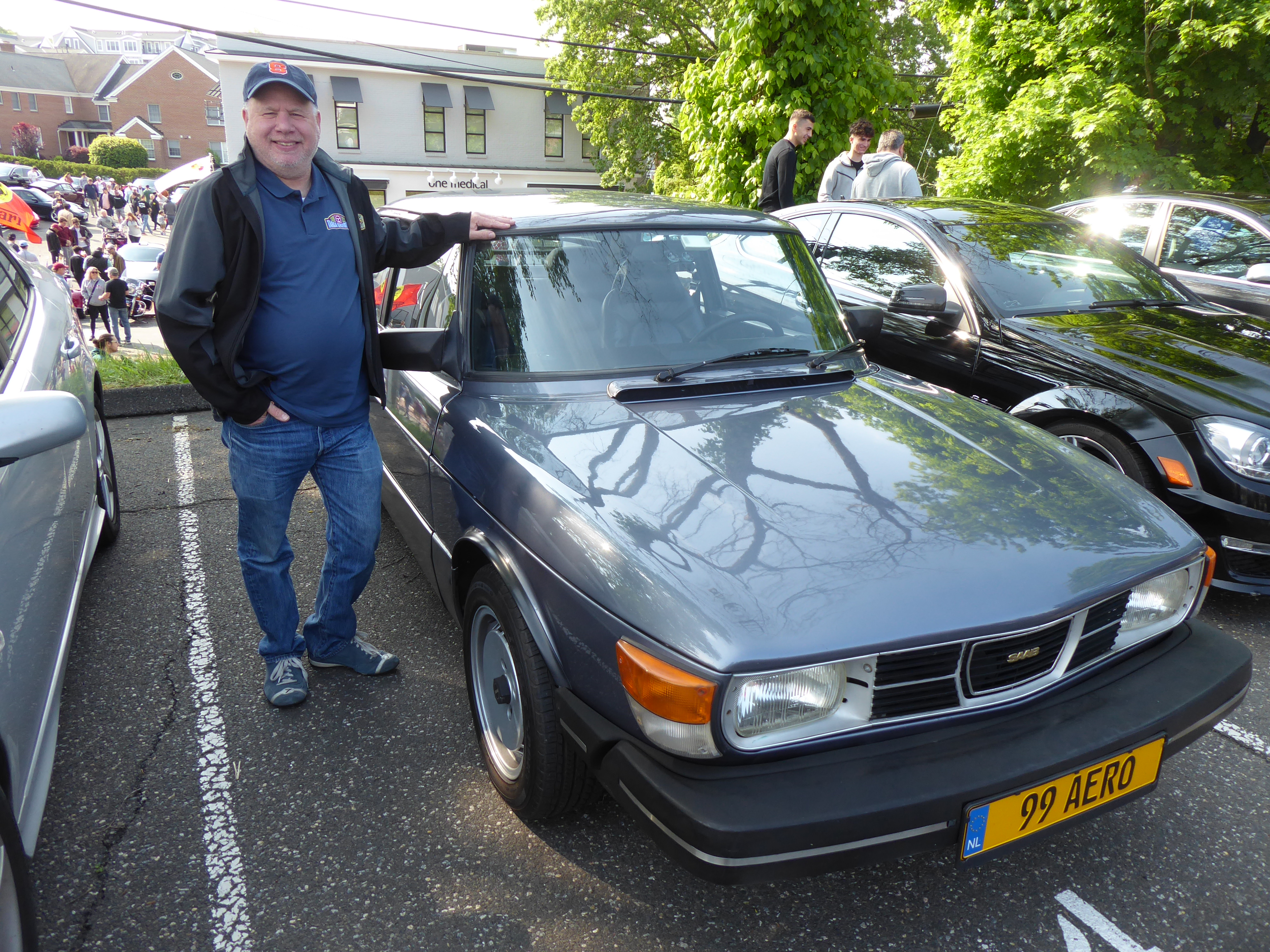 Allen was encountered May 21 on the ground at Caffeine and Carburetors, the truly wonderful and informal old car gathering in New Canaan, Connecticut. These cars and coffee events have caught on across the country—take a look, there’s probably one near you. In a parking lot around the corner I met Lewis Eig, who drove up from northern New Jersey in his 1984 eight-valve 99 GL, an import from the Netherlands, now converted to 16-valve turbo and wearing a fanciful “99 Aero” plate. Eig, whose father started him on Saabs, is a very hands-on guy who also restores Porsches—and plans vintage rallies.