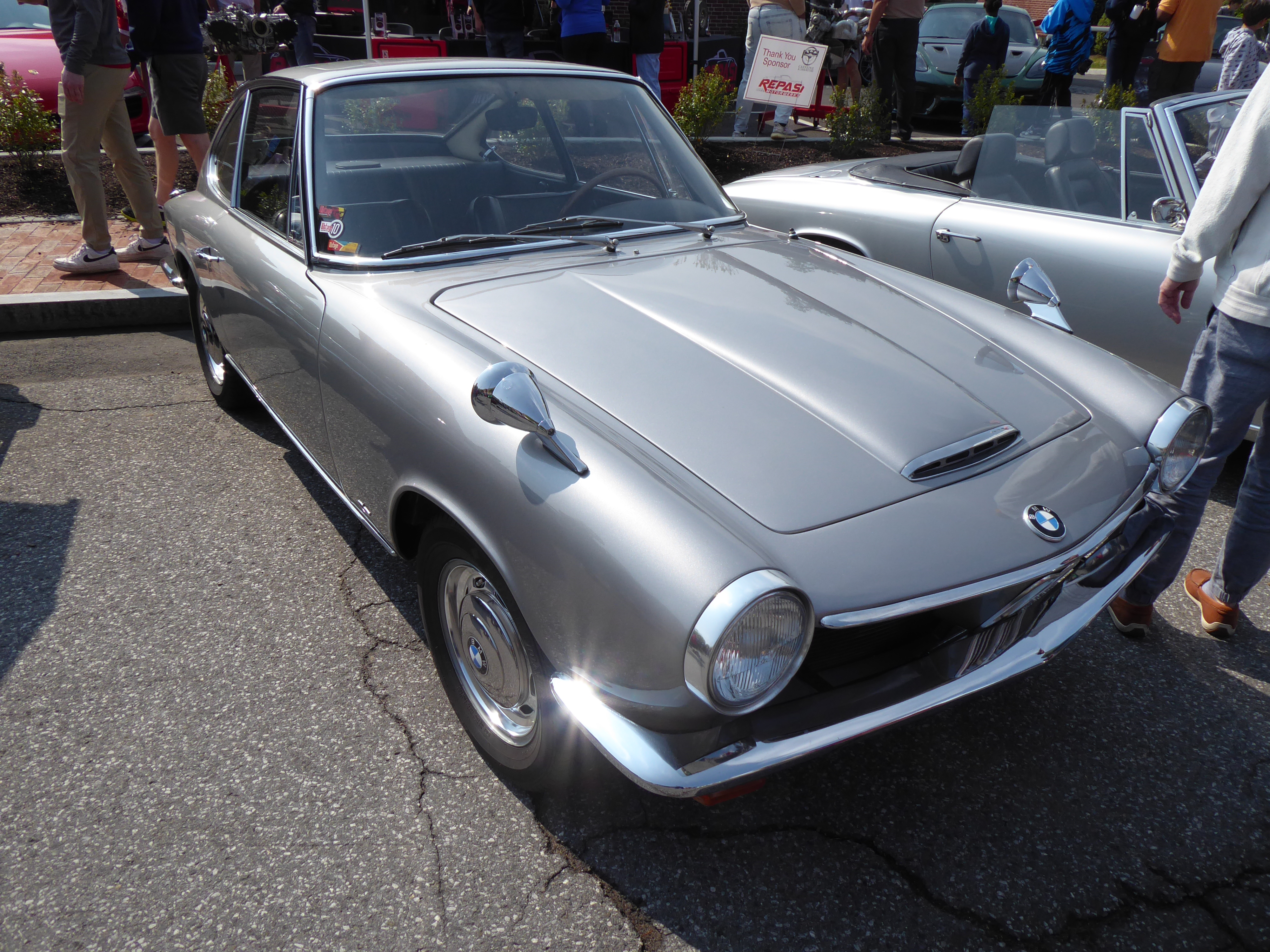 The 1600 GT was parked, appropriately, next to a Glas 1300 GT convertible—a truly rare car. This one was from before BMW acquired the Glas business and rebadged the cars. Glas produced 5,376 GTs, of which only 363 were the cabriolet. BMW then built a further 1,259.