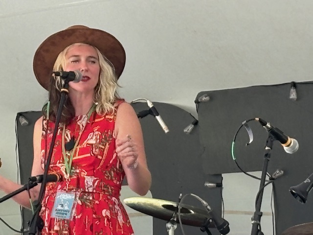 In the same vein and with some of the same standards, playing in the dance tent, was New York-based Sweet Megg, who is steeped in country swing and counts Patsy Cline and Billie Holiday as influences. She had great stage presence, and another great band.