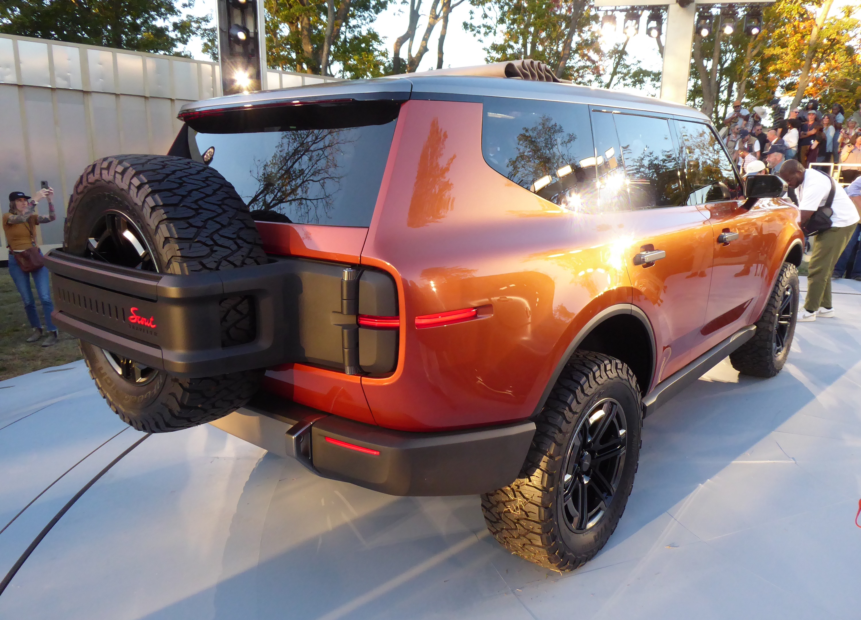 The old Scout logo is re-employed prominently, and on the pickup tailgate it even lights up. The SUV rocked a retro rollback “cabana” canvas sunroof. “The essence of the historic vehicles is preserved,” Benjamin said. “We’re picking up the character of the old Scout in a new and fresh way.”