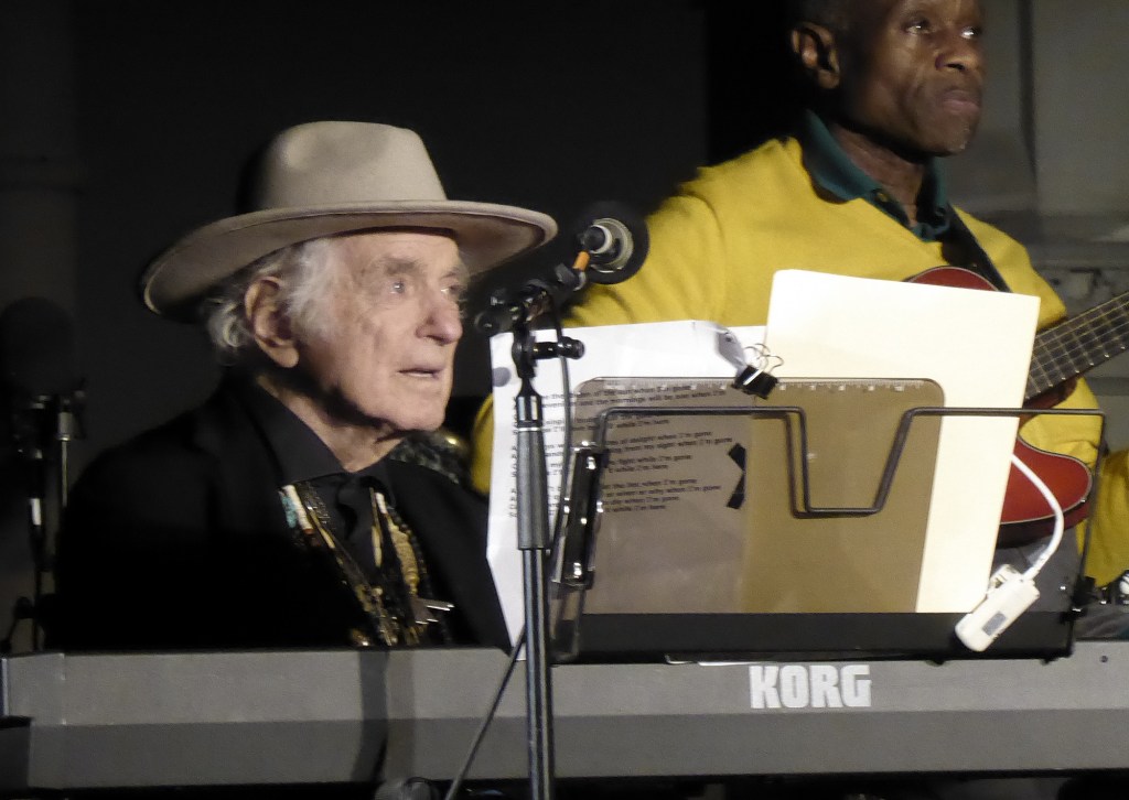 David Amram (above) was amazing. At 93, he’s still playing (pocket flutes, electric piano, a Chinese instrument) and singing in top form. This omnivorous musician has deep roots in folk, jazz and classical music, and a bunch of stories to tell about working with the Beats in the 1950s. In Brooklyn he was with a fine ensemble that included Sonny Rollins veteran Jerome Harris on guitar. Maybe that’s why the group did Rollins’ “St. Thomas,” during which Amram played two flutes simultaneously. The beat collaboration gave us Pull My Daisy, a groundbreaking 1959 short film, and Amram wrote the music for the song, and did it in Brooklyn: