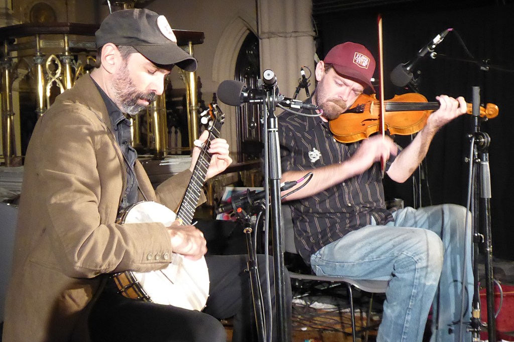 The Downhill Strugglers (above), which includes the festival’s guiding light and emcee Eli Smith, was down to two members (Smith and Jackson Lynch) because the third fellow, Walker Shepherd, was off having his first child. No matter, they were rousing anyway, performing songs from their latest on Jalopy Records, Old Juniper. Intriguing to hear “Casey Jones” the way it was originally sung, before the likes of Burl Ives got a hold of it.