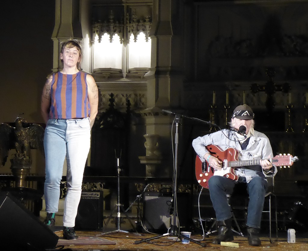 Michael Hurley (above, right) is of similar vintage to Peter Stampfel in and around New York, and their collaborations go back many years. Hurley, in his 80s, is enjoying a renaissance with many young admirers, including performers such as Cat Power, Lucinda Williams, Elizabeth Mitchell, Rose and the Bros, Big Thief’s Adrianne Lenker, and many more.