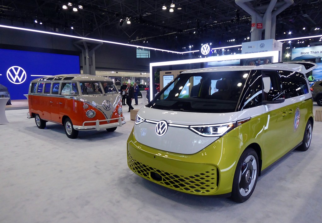 The VW ID.Buzz, with its Microbus ancestor behind, was an award winner at World Car.