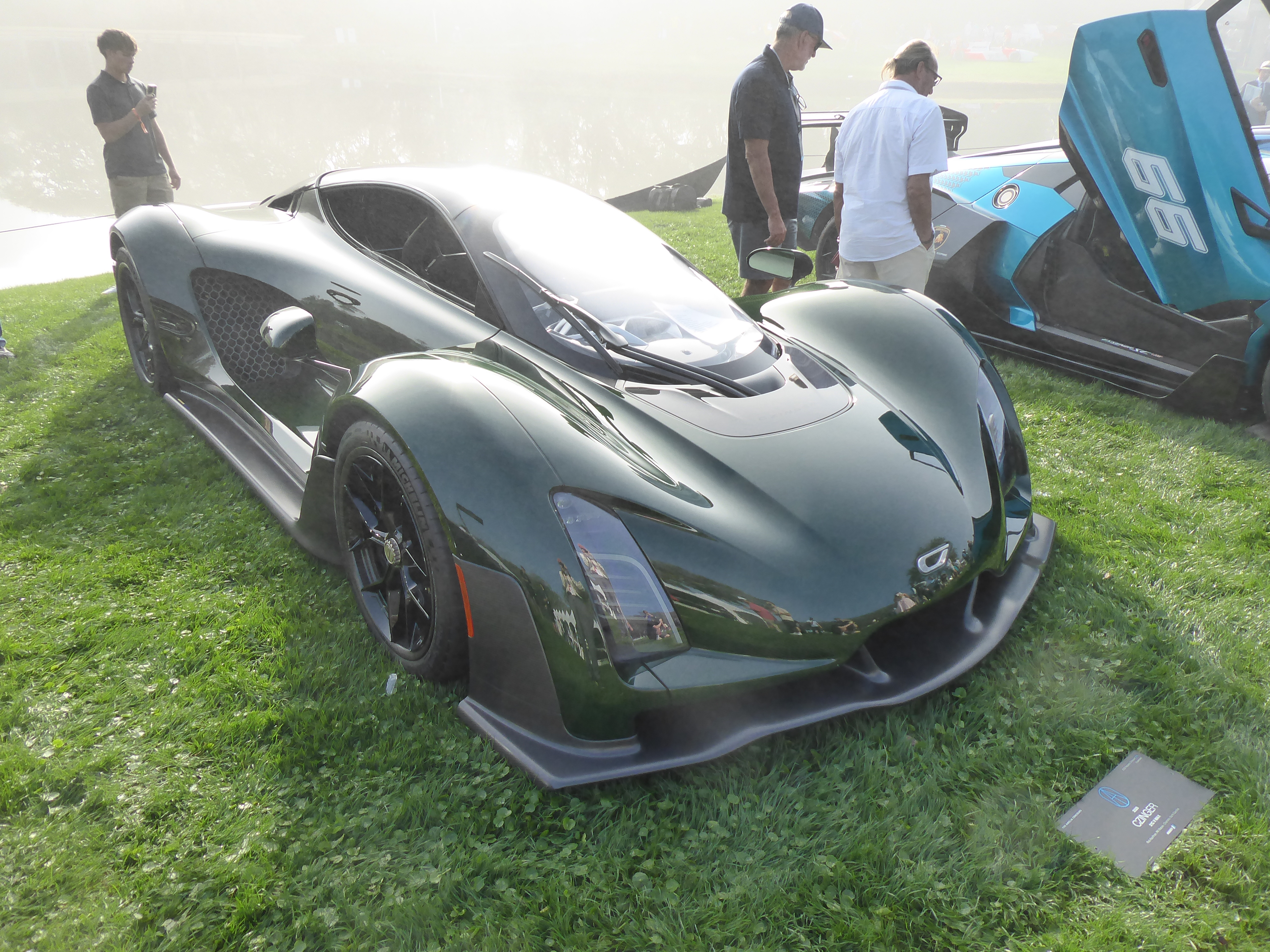 2025 Czinger 21C V MAX. Kevin Czinger started out making an electric car, the Coda, then graduated to revolutionizing manufacturing with 3D printing. And as an attention-getter, he also builds hypercars, such as this unusual tandem-seated, carbon-fiber-bodied space capsule with 1,250 horsepower from a hybrid drivetrain featuring a 2.88-liter twin-turbo V-8 and sequential-shifting seven-speed transmission. Just 80 are to be made, and sold for $2 million and up. Rev it to 11,000 rpm! The green carbon fiber was amazing to see.
