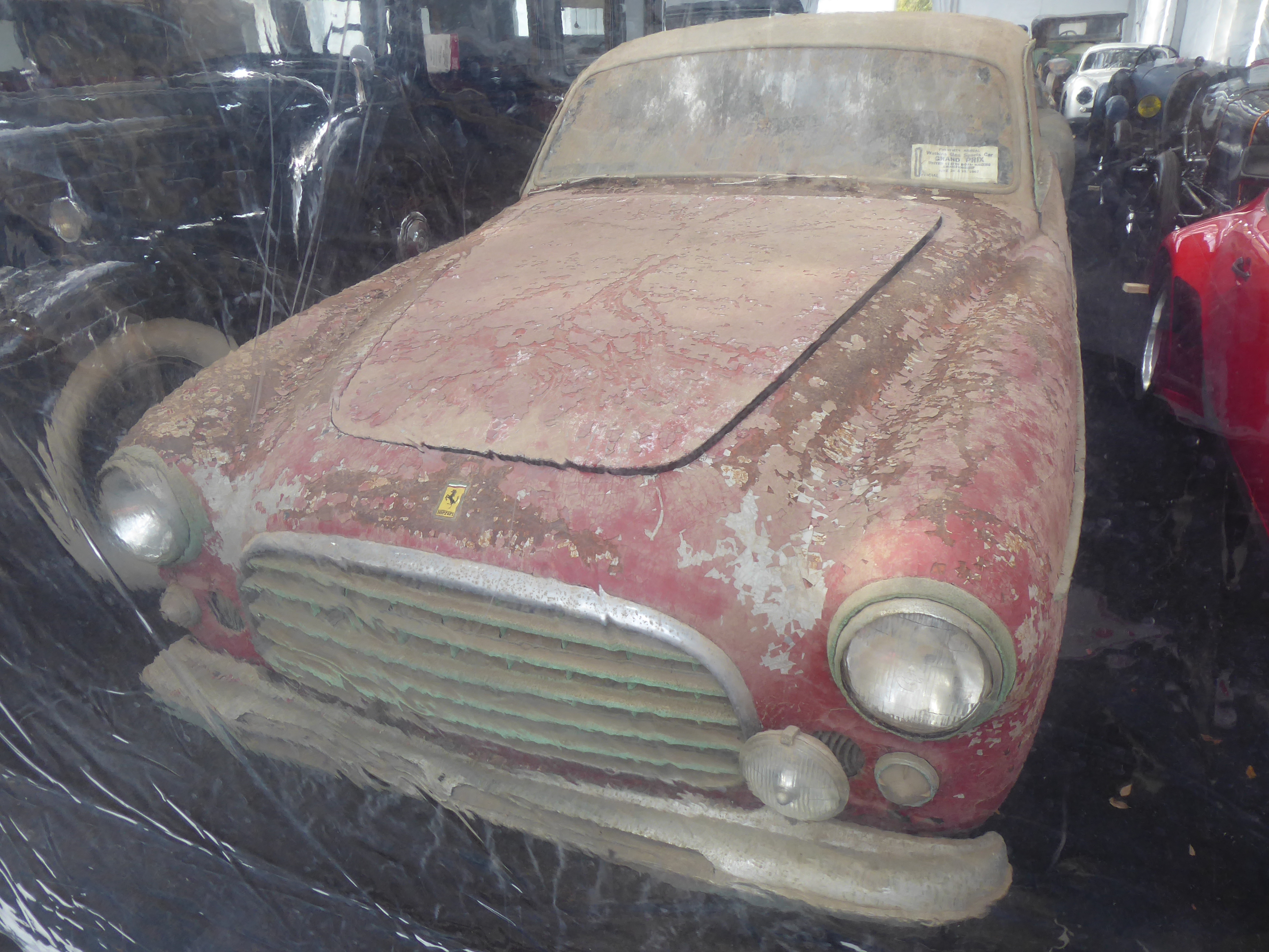 But I found myself looking for the barn-find 1951 Ferrari 342 America coupe long dormant in upstate New York. I finally found it in the just-sold, no-go purgatory tent, and took a photo through the plastic. It is the only such car bodied by Ghia, one of just seven of the model, and sported a sticker from the Watkins Glen Sports Car Grand Prix in 1967. Although this example needed just about everything, it certainly had patina in spades. It sold for $480,000, according to the guard on duty, which is a lot less than the $900,000 to $1.2 million estimate.