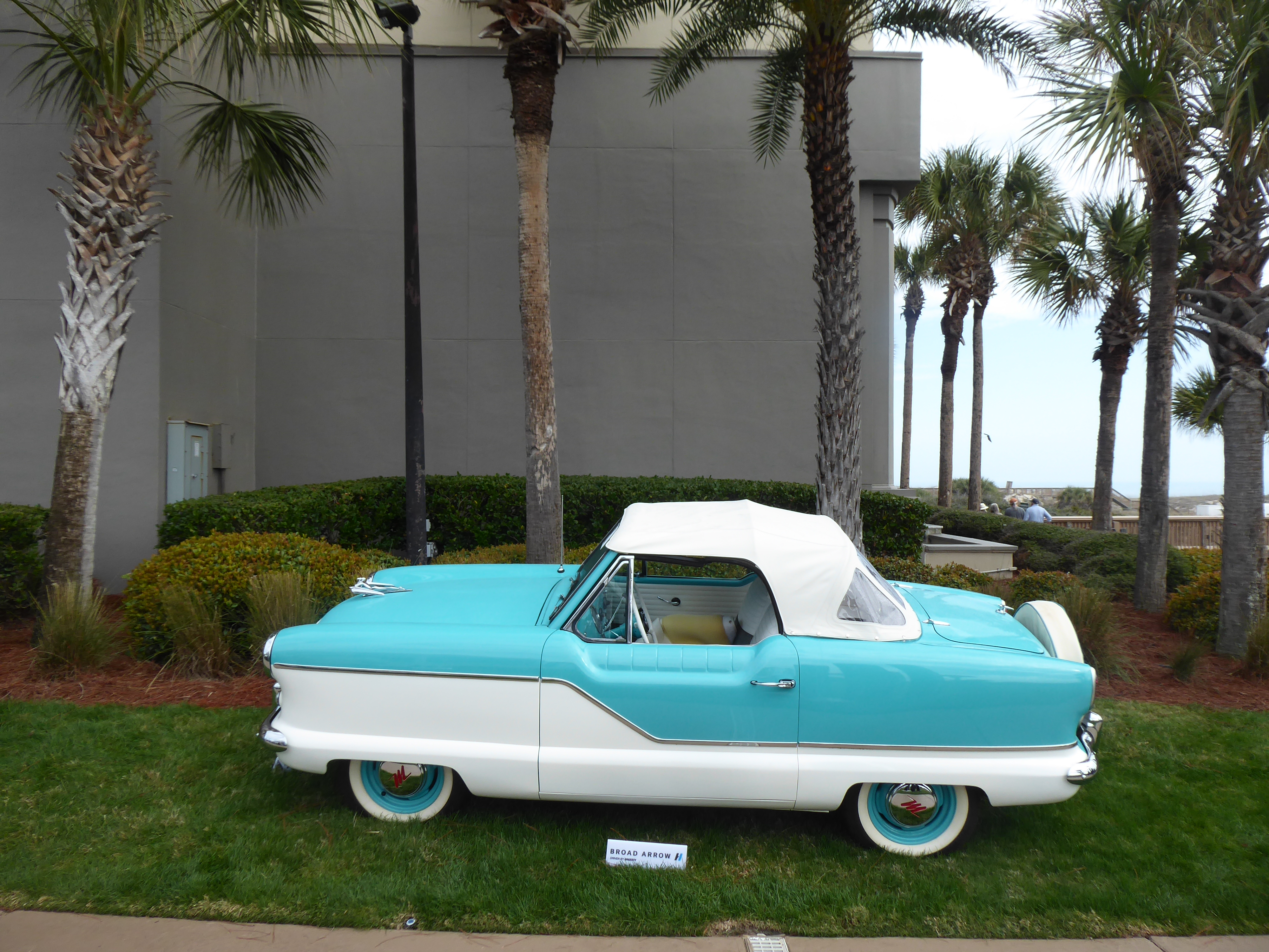 And a 1960 Nash Metropolitan made a nice photo against the wall of the Ritz-Carlton, with evocative palm trees to complete the picture.