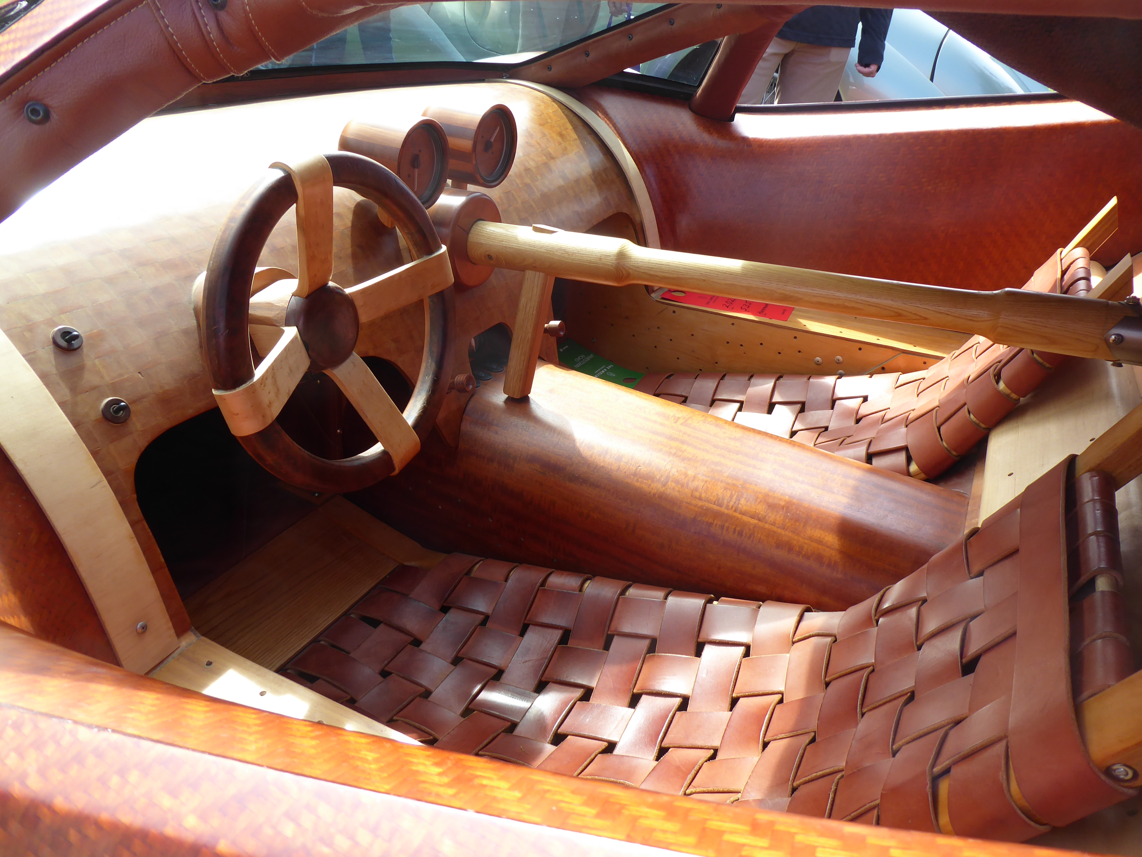 2008 Harmon Splinter. Never was so much effort expended on something so ghastly. The Splinter is, as the name implies, made of wood, including the wood veneer cloth body, the wheels, the instrument pods, the uncomfortable-looking seats. Joe Harmon was a 28-year-old graduate student at North Carolina State when he thought of building a wood supercar for his master’s thesis. “I wanted to show that wood isn’t an antiquated, low-technology material,” he said. Indeed, the worksmanship is first class throughout, but the whole car, well, termites would love it.